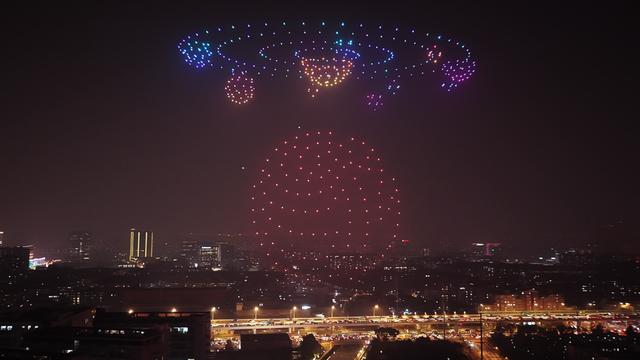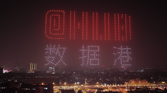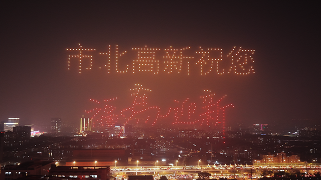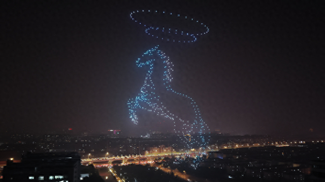 500架无人机夜空作画!市北高新上演“赛博烟花”