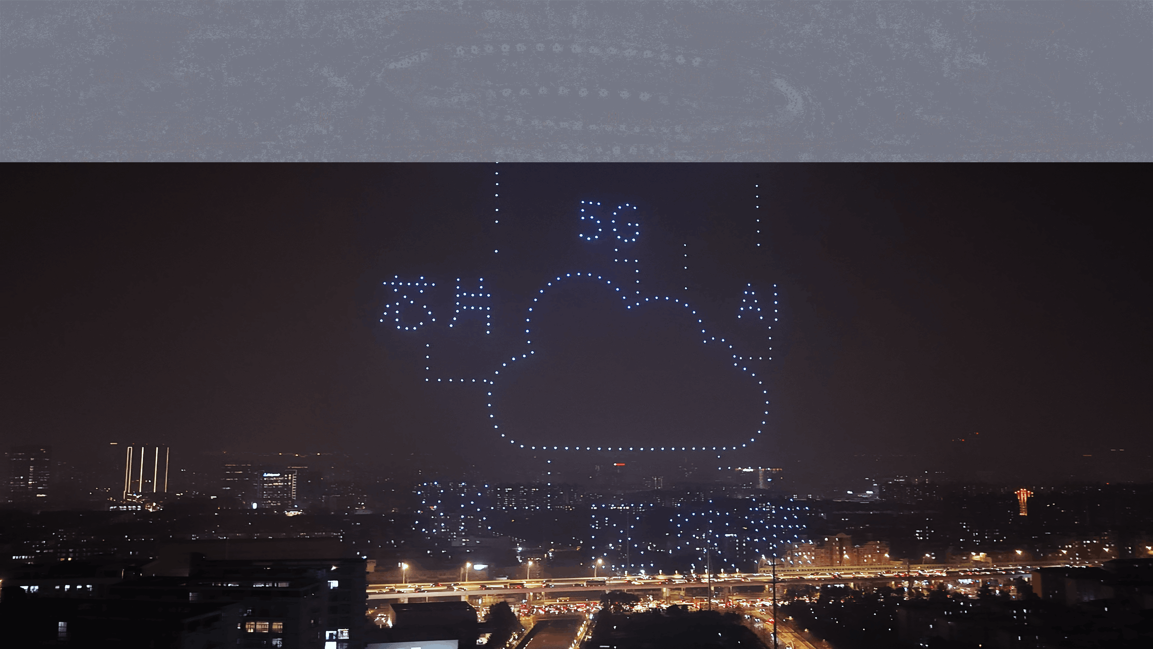 夜幕为幕,华灯初上,无人机集群同步升空。起初,光点流转,勾勒出星河流转的初始轮廓;随即光影交叠,汇聚形成“市北高新”的醒目标识。转瞬之间,天际亮起蓝绿交织的六边形光阵——“数通链谷”的品牌符号熠熠生辉。紧接着,“数据港”的标识同步点亮苍穹,宛如未来产业云图在夜空展开;一匹由光织就的“天马”昂首跃出,划破夜幕,象征着园区企业蓄势突破、奔腾向上的无限生机。