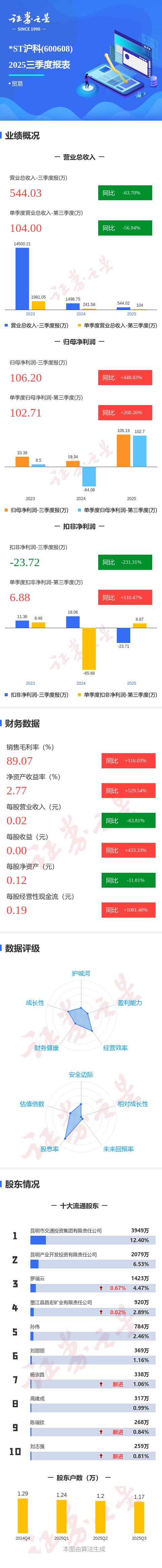图解*ST沪科三季报:第三季度单季净利润同比增长260.26%