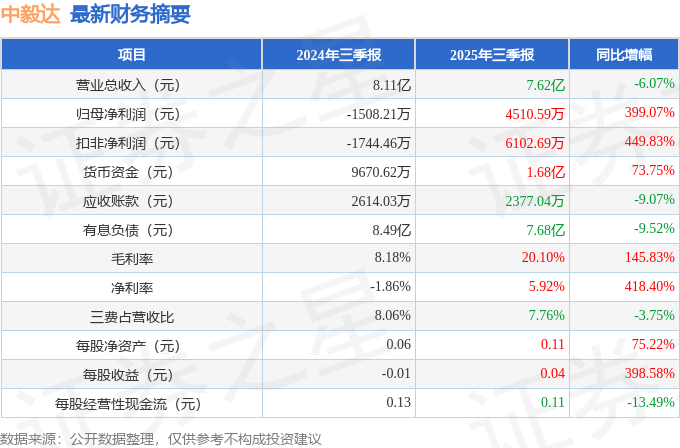 中毅达(600610)2025年三季报简析:净利润同比增长399.07%,盈利能力上升
