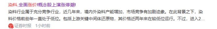 比3倍中毅达还猛?染料价格大涨50% 7家产能龙头迎来戴维斯双击