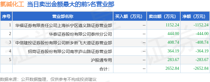 11月7日氯碱化工(600618)龙虎榜数据:游资炒股养家上榜
