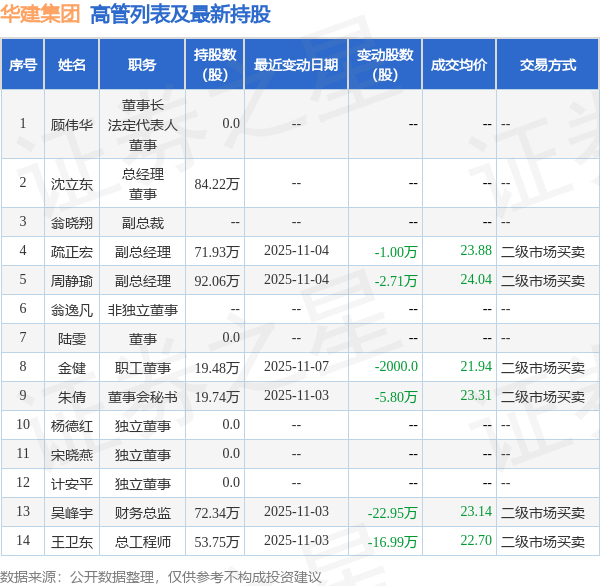 华建集团近半年内的董监高及核心技术人员增减持详情如下:
