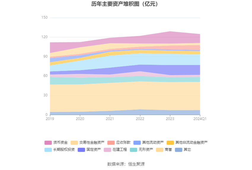 资产重大变化方面,截至2024年一季度末,公司货币资金较上年末减少27.10%,占公司总资产比重下降3.61个百分点;应收账款较上年末增加26.09%,占公司总资产比重上升1.40个百分点;商誉较上年末增加0.67%,占公司总资产比重上升1.37个百分点;无形资产较上年末增加0.04%,占公司总资产比重上升0.21个百分点。