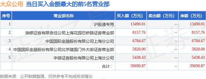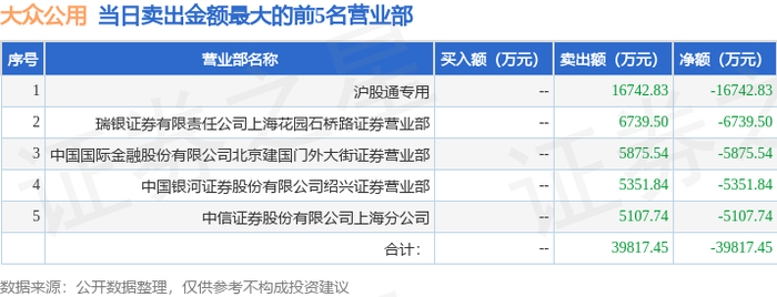 10月13日大众公用(600635)龙虎榜数据:游资流沙河上榜