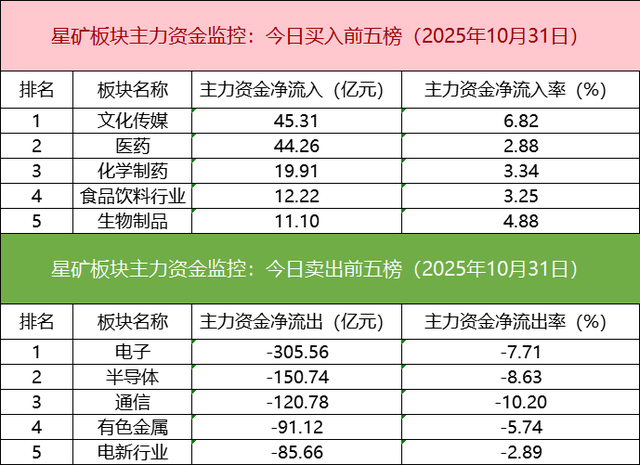 从主力板块资金监控数据来看,文化传媒板块主力资金净流入居首。
