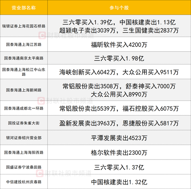 一线游资活跃度较高,大众公用今日涨停,获两家一线游资席位(国泰海通上海中山东路、国泰海通上海新闸路)分别买入9511万、8990万。三六零获三家一线游资席位合计买入4.74亿。