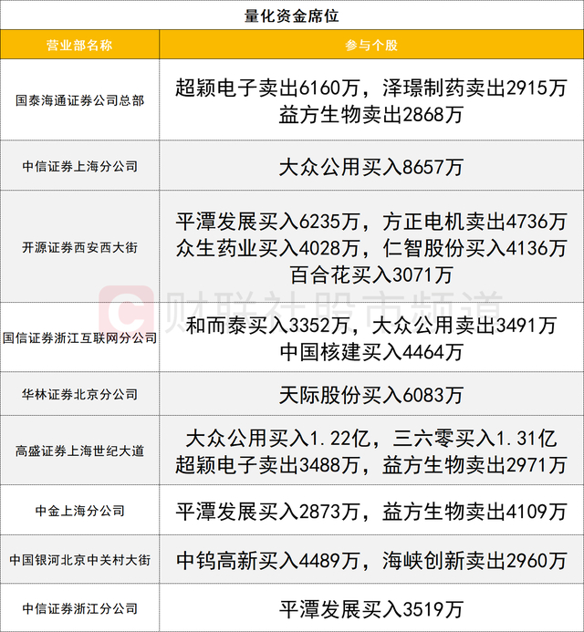 量化资金活跃度较高,大众公用获两家量化席位(中信证券上海分公司、高盛证券上海世纪大道)分别买入8657万、1.22亿。