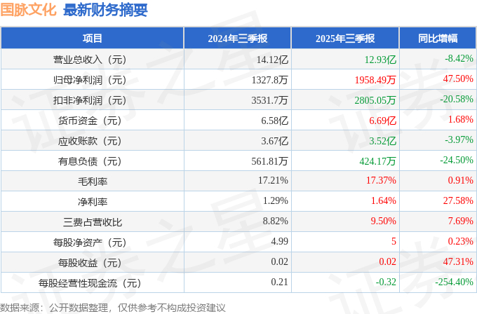 国脉文化(600640)2025年三季报简析:净利润同比增长47.5%,盈利能力上升