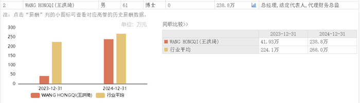 据东方财富网数据,中源协和总经理WANG HONGQI(王洪琦)2024年所获薪酬为238.8万元。
