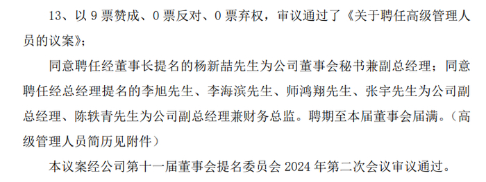 中源协和表示,陈轶青辞职后,由公司副董事长、总经理WANG HONGQI(王洪琦)代行财务总监职责,公司董事、副总经理李旭代行董事会秘书职责,公司将尽快完成相关岗位聘任。