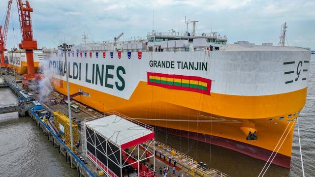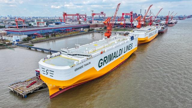 8月8日,由中国船舶集团有限公司旗下上海外高桥造船有限公司为意大利Grimaldi公司建造的首艘9000车位汽车运输船“GRANDE TIANJIN”号命名交付。至此,外高桥造船自2003年交付首制船15万吨级海上浮式生产储油装置(FPSO)“海洋石油111”以来,累计完工交付600艘(座)船舶及海工平台共计1亿202万载重吨,以年均27艘/463.7万载重吨的交付效率持续刷新中国造船业纪录。