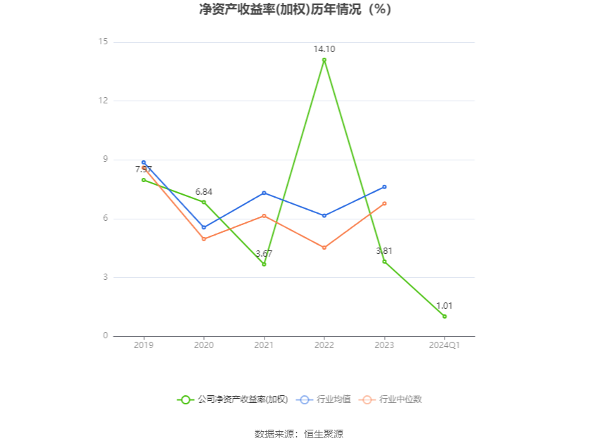 数据显示,2024年第一季度公司加权平均净资产收益率为1.01%,较上年同期增长0.63个百分点;公司2024年第一季度投入资本回报率为0.92%,较上年同期增长0.62个百分点。