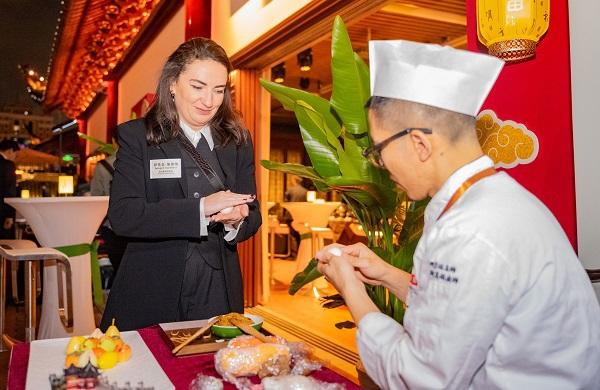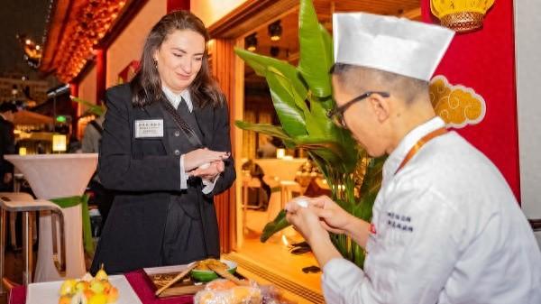 嘉宾们先后探访始建于明代的豫园园林,漫步九曲桥与湖心亭,沉浸式感受上海夜间经济的繁荣与海派烟火气。在海上梨园,昆曲的婉转与民乐的清越交织,呈现出一场传统艺术盛宴;绿波廊点心大师现场展示海派点心制作技艺,丽云阁扇面画师量身定制个性扇面,湖心亭茶艺师邀嘉宾共品香茗,老字号匠心技艺让嘉宾们深度体验东方雅致生活。