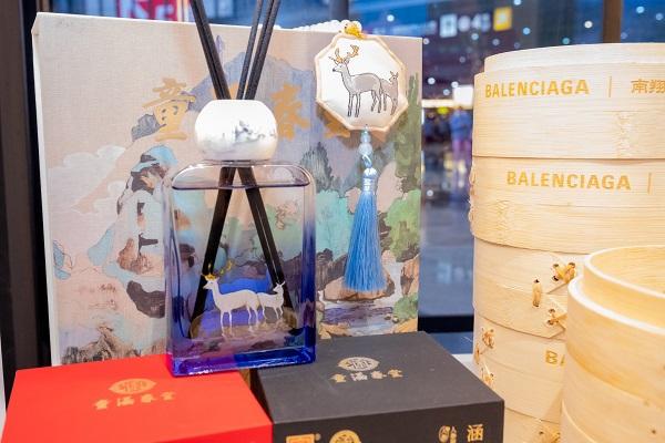 百年老字号南翔馒头店携手法国时尚品牌巴黎世家,推出融合中西特色的黑松露小笼包与定胜糕;同时与美妆品牌WEI蔚蓝之美联名,打造小笼包造型手工皂,将传统美食元素延伸至生活美学领域。中医药老字号童涵春堂则联合艺术家邱岸雄,以《山海经》为创意核心,结合湖北蕲春道地蕲艾资源,推出“新山海系列”产品。该系列采用“非遗技艺+艺术创作+道地药材”的融合模式,践行“传统不古、潮流有根”的发展理念,丰富了中医药产品的文化内涵。