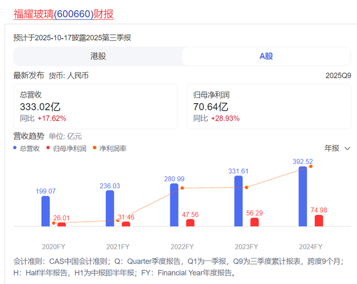 值得一提的是,在宣布董事职务变动的同时,福耀玻璃也披露了财报。报告显示,公司在2025年前三季度实现了可观的业绩增长。