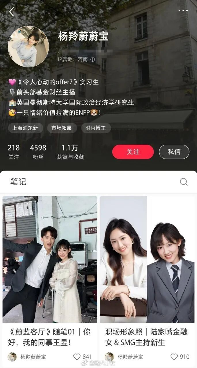 随着节目播出,杨羚蔚真的从交银施罗德离职了。基金业协会查无此人了,小红书简介也改成了“前头部基金财经主播”。