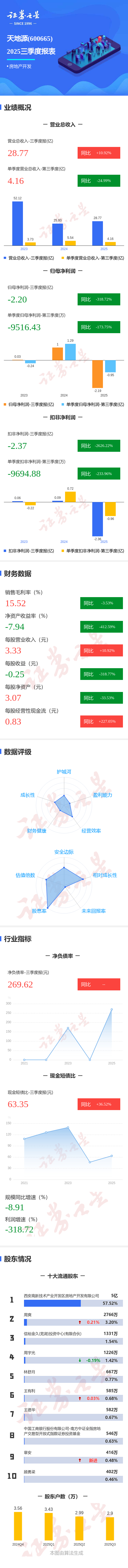 图解天地源三季报:第三季度单季净利润同比下降173.75%