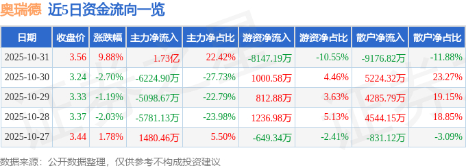 证券之星消息,奥瑞德10月31日涨停收盘,收盘价3.56元。该股于9点33分涨停,4次打开涨停,截止收盘封单资金为3567.44万元,占其流通市值0.41%。