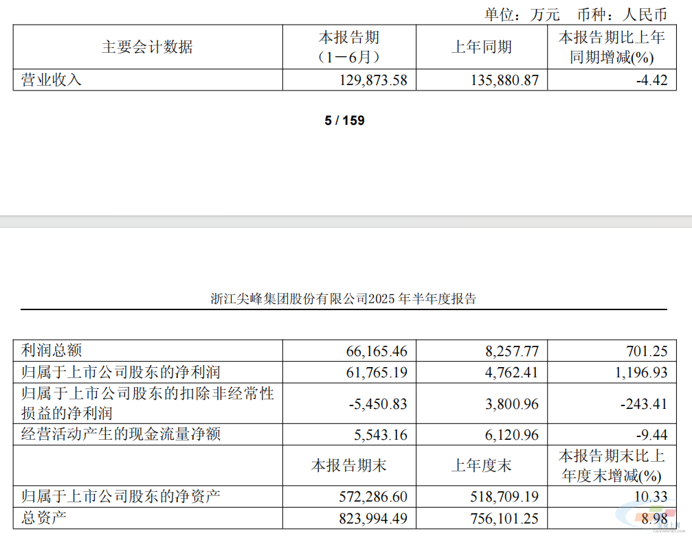 尖峰集团:上半年净利润6.18亿元,同比增长1196.93%
