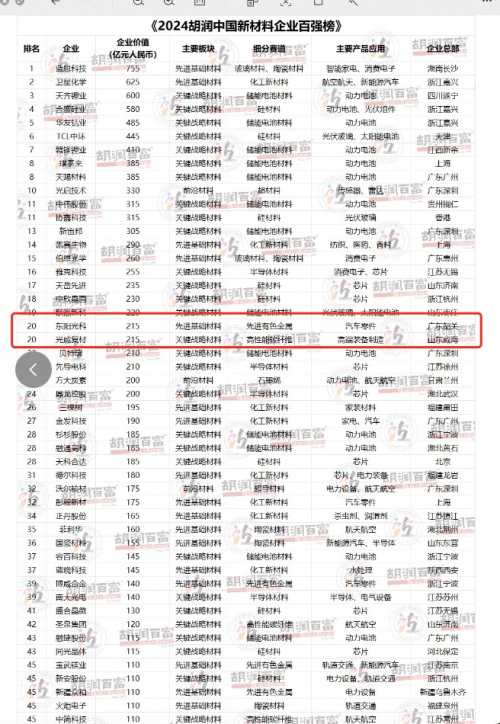 TOP20!东阳光科入榜《2024 胡润中国新材料企业百强榜 》