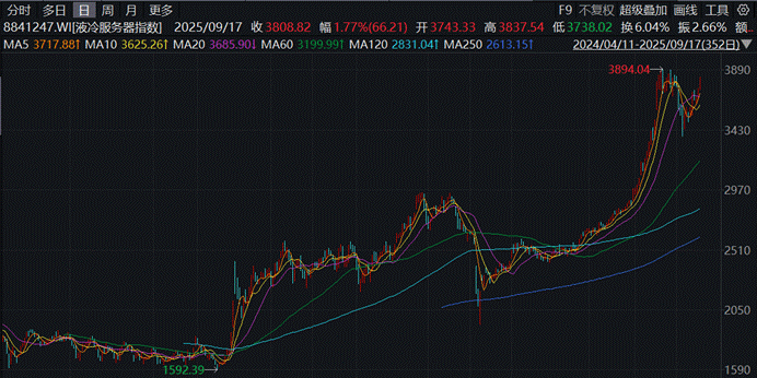 值得关注的是,今年以来液冷板块持续走强,成为资本市场的热门赛道。根据Wind数据,截至9月17日收盘,液冷服务器指数(8841247.WI)年内涨幅已达55.49%,板块中淳中科技、大元泵业、英维克、川润股份等多股涨幅超过一倍。