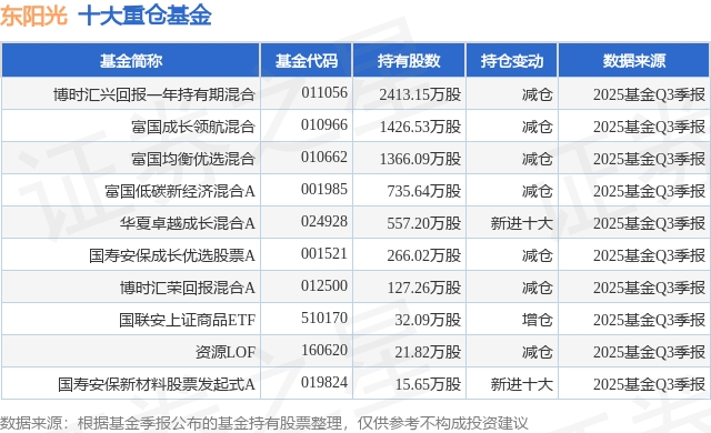 重仓东阳光的前十大公募基金请见下表:
