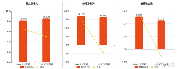 公司营业总收入为11.40亿元,较去年同报告期营业总收入增加5374.24万元,实现3年连续上涨,同比较去年同期上涨4.95%。归母净利润为42.21亿元,较去年同报告期归母净利润减少2.01亿元,同比较去年同期下降4.54%。经营活动现金净流入为5.77亿元,较去年同报告期经营活动现金净流入减少7851.32万元,同比较去年同期下降11.97%。