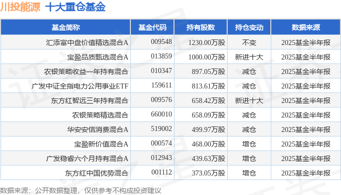 持有川投能源最多的基金为汇添富中盘价值精选混合A,目前规模为53.96亿元,最新净值0.8613(10月21日),较上一交易日上涨1.86%,近一年上涨16.04%。该基金现任基金经理为胡昕炜。