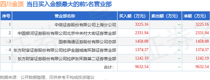 11月12日四川金顶(600678)龙虎榜数据:游资北京中关村上榜