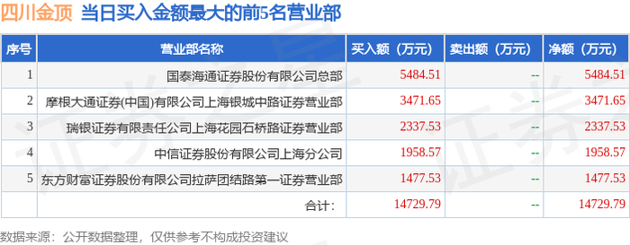 1月7日四川金顶(600678)龙虎榜数据:游资章盟主上榜