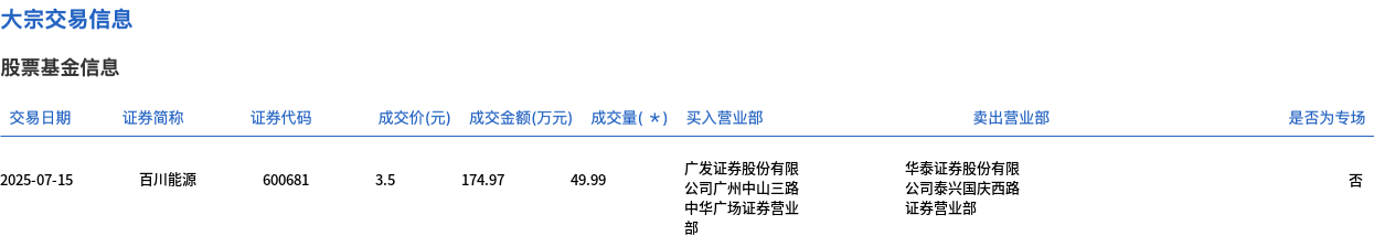 百川能源今日大宗交易折价成交49.99万股,成交额174.97万元
