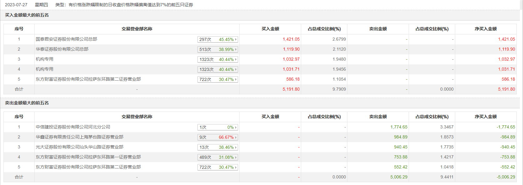 7月27日,京投发展今日跌7.46%,龙虎榜数据显示,上榜营业部席位全天成交1.02亿元,占当日总成交金额比例为19.23%。其中,买入金额为5191.8万元,卖出金额为5006.29万元,合计净买入185.51万元。