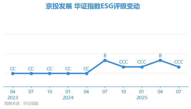 日前,华证指数公布了新一期(2025年7月31日)的ESG评级结果,京投发展(600683.SH)获得CCC评级(华证指数评级为C起至AAA九档,C为最低档,AAA为其最高一级评级/AA为其第二档),上一期(2025年4月30日)ESG评级为B。本期ESG评级在102家房地产管理和开发行业A股上市公司中排名第74(上一期排名第72)。
