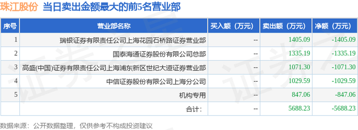 11月3日珠江股份(600684)龙虎榜数据:机构净卖出847.06万元