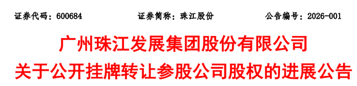 公告显示,2025年9月10日、9月26日,广州珠江发展集团股份有限公司分别召开第十一届董事会2025年第九次会议、2025年第一次临时股东会,审议通过《关于拟公开挂牌转让参股公司股权的议案》。为优化公司资产结构和资源配置,公司拟以1元为挂牌底价,在广东联合产权交易中心有限公司公开挂牌转让所持有的广东亿华房地产开发有限公司41%股权。