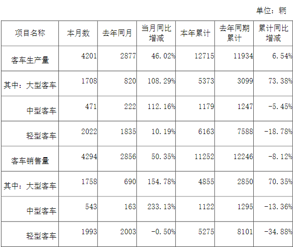 5月8日公告,前4月客车销量合计1.13万辆,同比下滑8.12%。