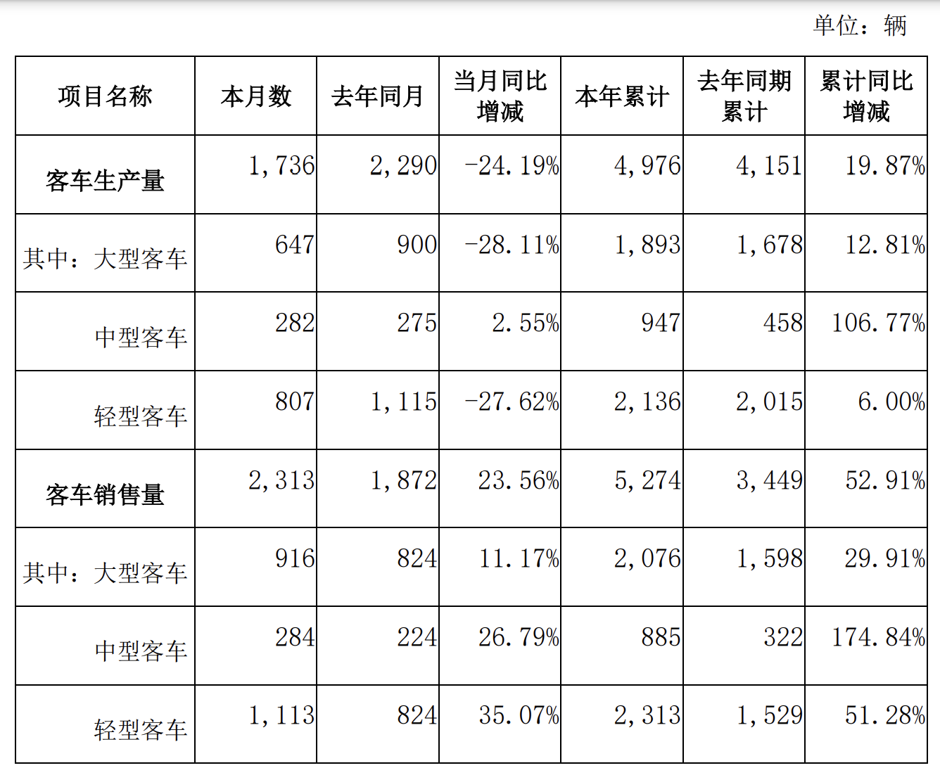 金龙汽车:前2月客车累计销售量5274辆,同比增长52.91%