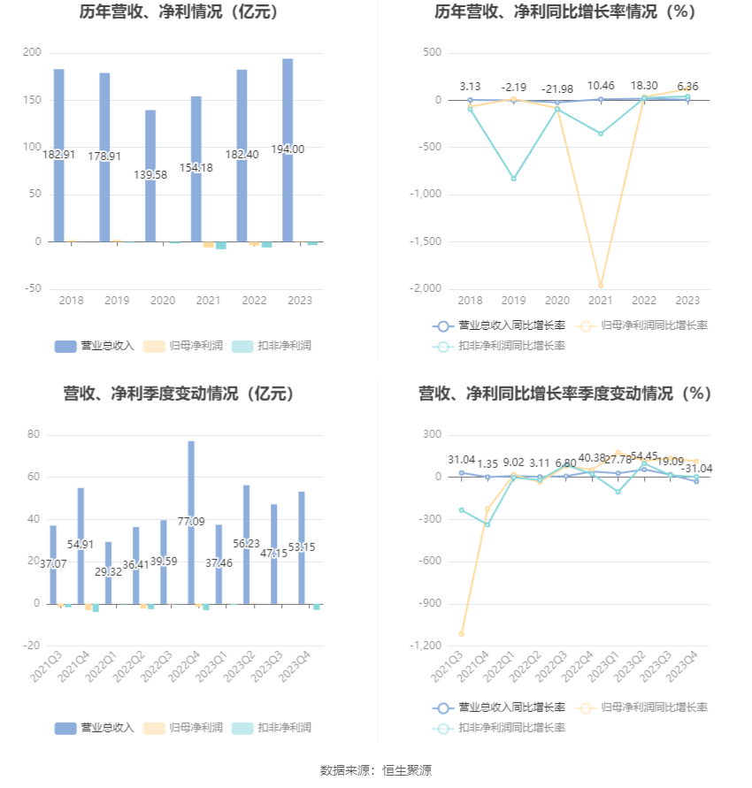 数据显示,2023年公司加权平均净资产收益率为1.97%,较上年同期增长14.60个百分点;公司2023年投入资本回报率为1.48%,较上年同期增长6.01个百分点。