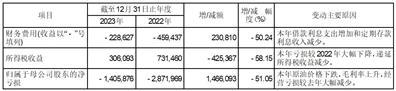2023年度本集团财务收益净额为人民币2.39亿元,较上年度财务收益净额人民币4.43亿元减少人民币2.04亿元,主要是报告期内借款利息支出增加和定存利息收入减少,导致本集团利息支出由2022年的人民币0.99亿元增加至2023年的人民币1.45亿元,增加人民币0.46亿元;同时利息收入由2022年的人民币5.42亿元减少至2023年的人民币3.84亿元,减少人民币1.58亿元。