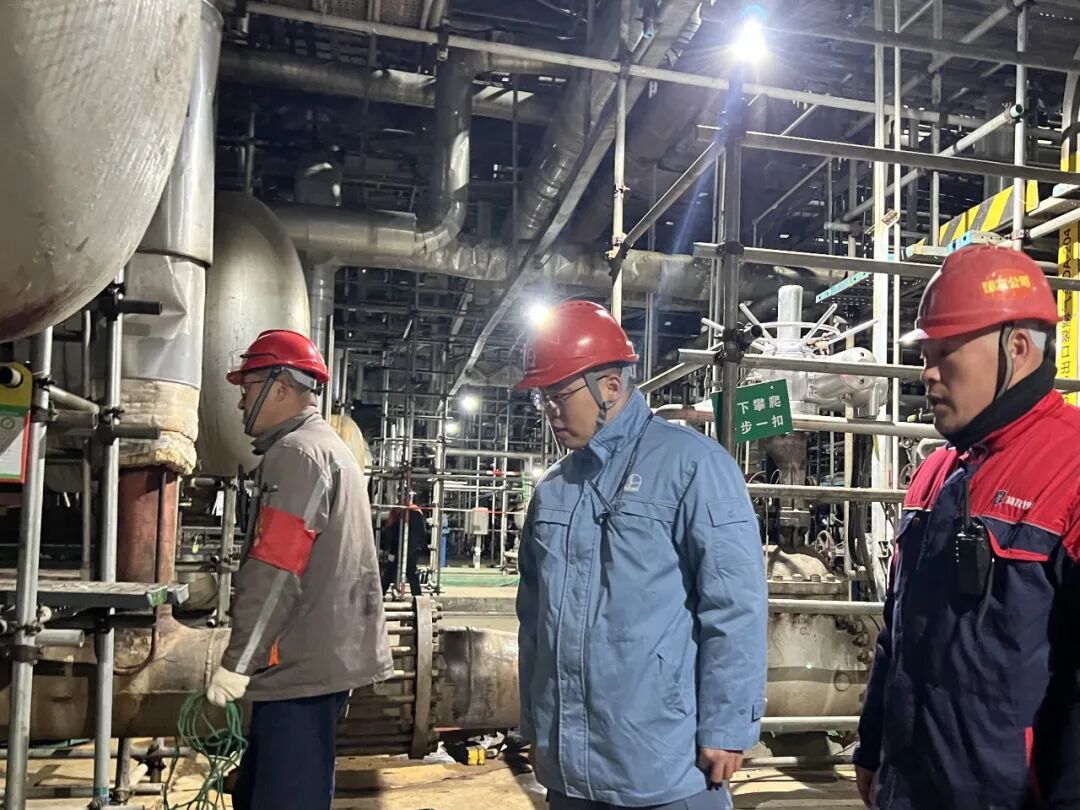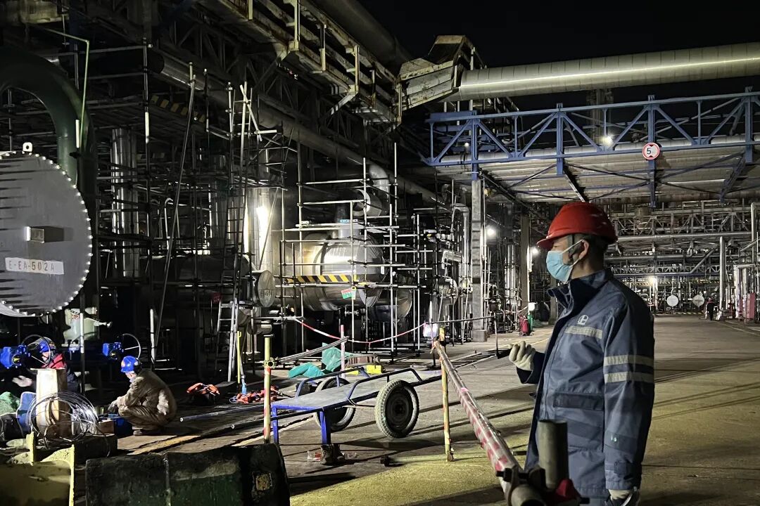 正值元旦假期,公司大修已进入收尾关键阶段,为按期完成检修任务,奋战在一线的参检人员在寒风中挑灯夜战,全力推进检修进程。