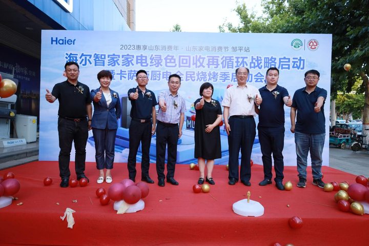6月9日,海尔智家家电绿色回收再循环战略启动暨卡萨帝厨电全民烧烤季启动会在山东邹平盛大启幕。本次活动由山东省商务厅主办,山东省家用电器行业协会、海尔智家济南分公司和邹平海尔专卖店承办,旨在开展一系列惠民、便民、利民及以旧换新服务。