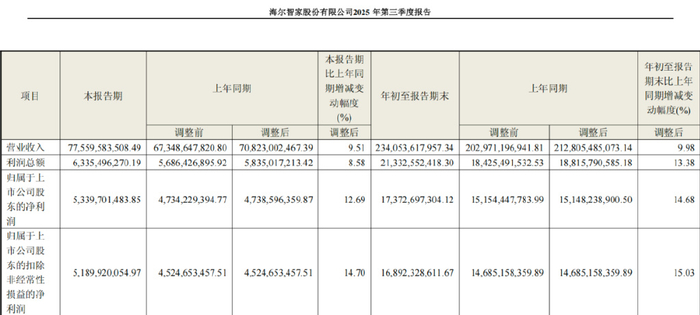 细读海尔智家2025年三季报,数据层面实则不乏亮点。