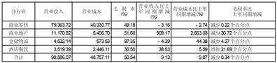 2.商业地产业务收入较上期增长909.17%,主要是报告期新增福清东百利桥项目商铺销售收入,同时兰州国际商贸中心项目商铺销售收入增加。