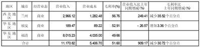 2.西北地区收入较上期增长15.31%,主要是兰州国际商贸中心项目商铺销售收入、兰州中心商业零售收入增加。
