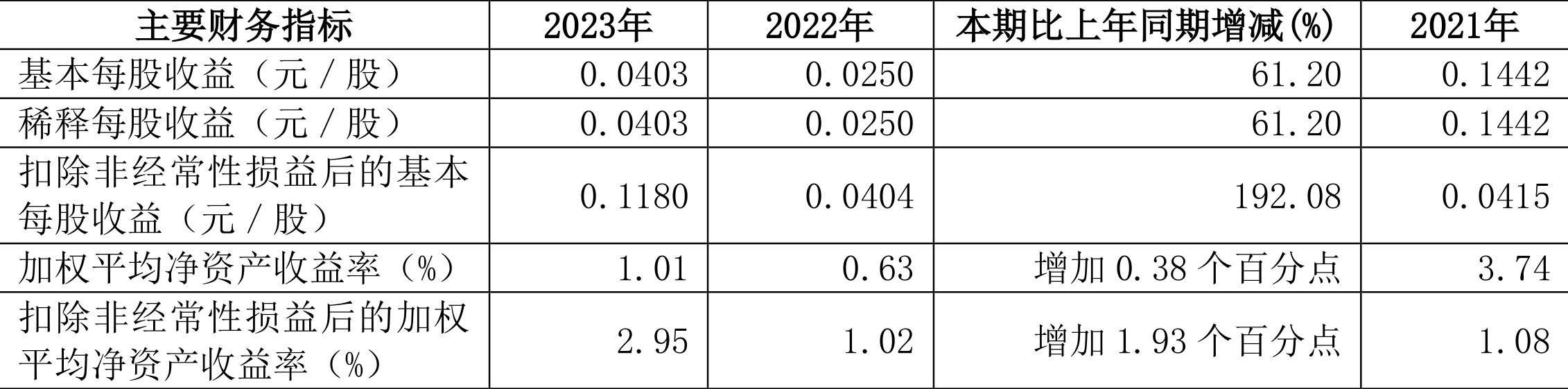 数据显示,2023年公司加权平均净资产收益率为1.01%,较上年同期增长0.38个百分点;公司2023年投入资本回报率为2.98%,较上年同期增长1.52个百分点。
