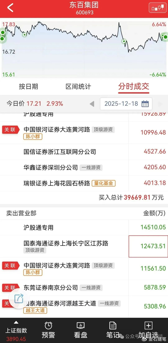 重回东百集团,根据昨日龙虎榜,金石杂谈认为,不排除今日有游资尾盘出货,这出货方式大概率不是陈小群。