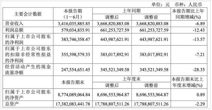 数据显示,大商股份今年上半年实现营业收入34.16亿元,同比下降6.89%;实现净利润4.23亿元,同比下降12.24%;归母扣非净利润3.55亿元,同比下降7.21%。