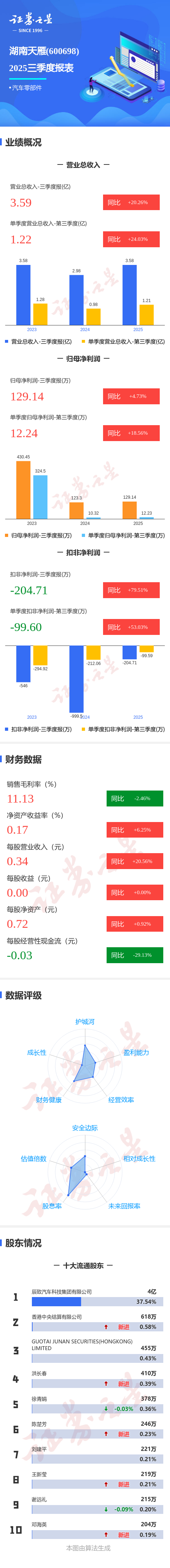 图解湖南天雁三季报:第三季度单季净利润同比增长18.57%