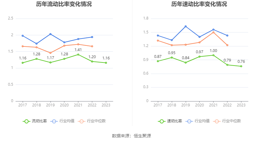 2023年,公司流动比率为1.16,速动比率为0.76。